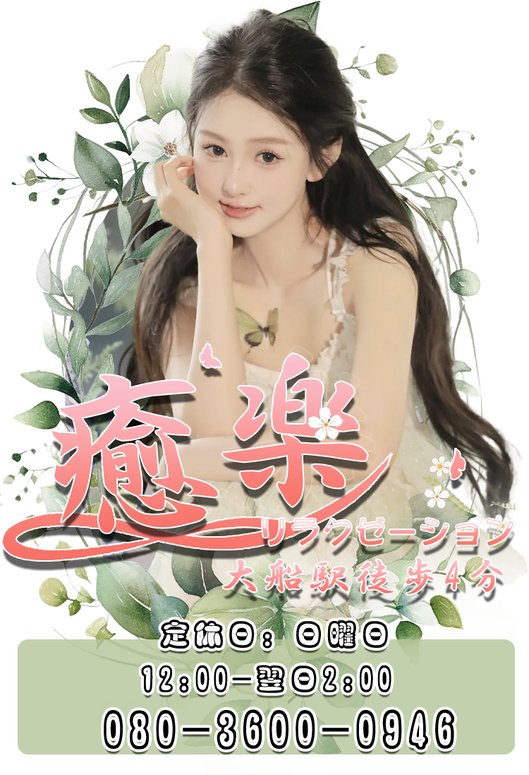 現代、癒しを求めている方が大勢います。そんなストレス社会で生きている貴方が心身共にリラックスでき、癒される空間を用意しています。 落ち着きのある空間・・・ 心のこもったマッサージ・・・ あなたの事をスタッフ一同、心よりお待ちしています。